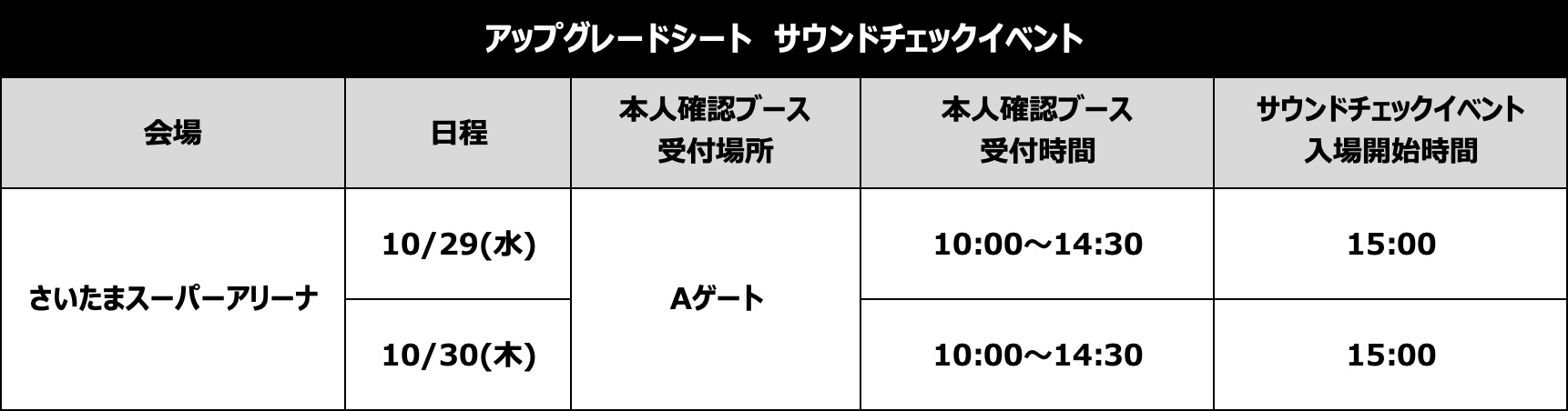 ・アップグレードシートサウンドチェックイベントスケジュールは急遽変更になる場合がございます。その際、チケットの払戻しはできかねますのであらかじめご了承ください。